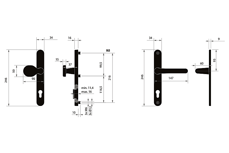 Kovanie sa upevňuje tromi bezpečnostnými skrutkami, pričom stredová skrutka je skrytá pod krytom. Model je dodávaný v rozstupe 92 mm.