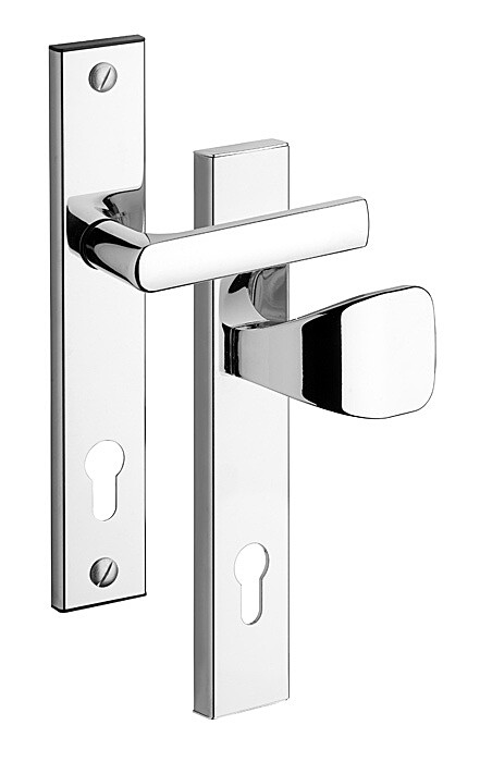 | Prevedenie: knoflík/klika Otvor na cylindrickú vložku PZ | Povrch: ROSTEX Chróm lesklý-nerez | Rozteč: 72 mm | Min. odber: 1 ks |