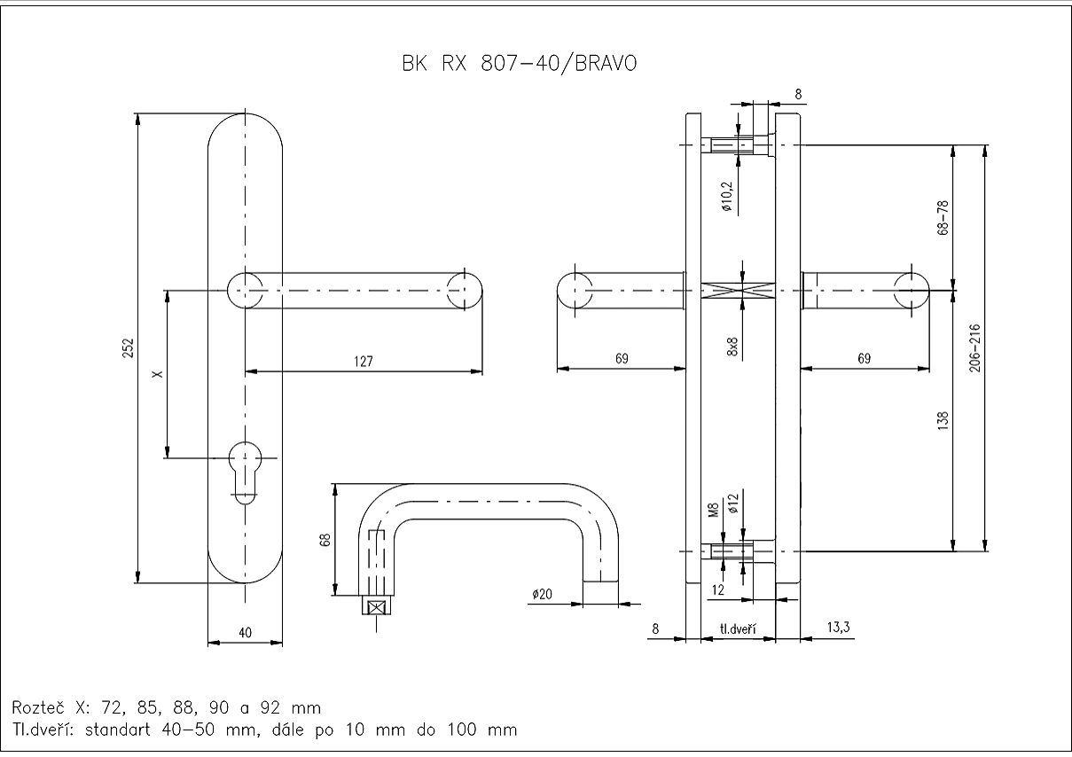 | Rozteč | 72 mm, 90 mm, 92 mm |