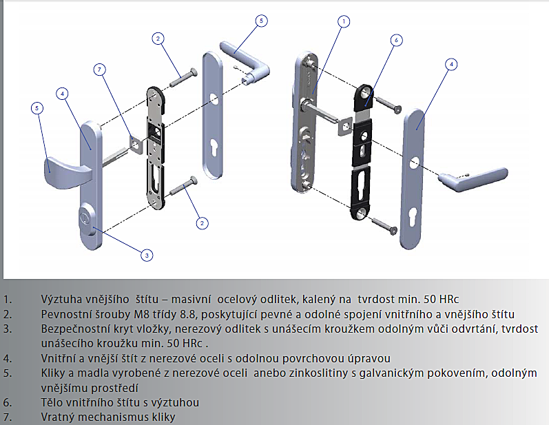 Bezpečnostné kovanie je určené na vstupné dvere otvárané dovnútra aj von.