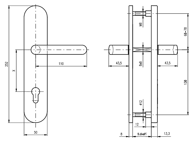 Bezpečnostné kovanie je určené na vstupné dvere otvárané dovnútra aj von.