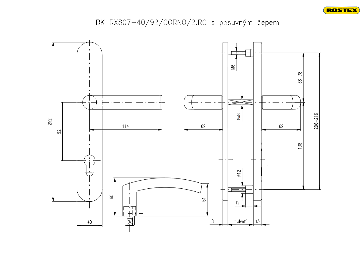 Bezpečnostné kovanie ROSTEX RX807-40/92 CORNO (biela)
