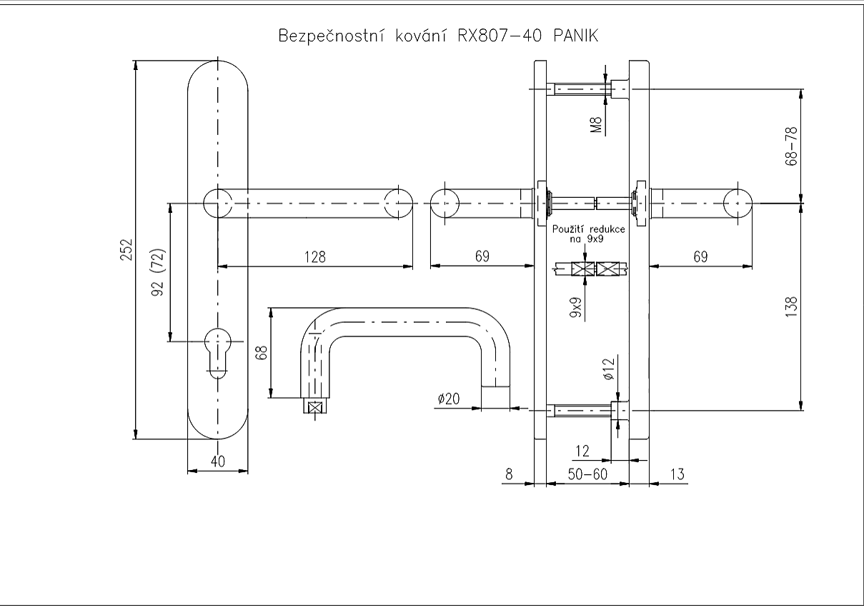 Univerzálne bezpečnostné kovanie pre široký sortiment zadlabávacích zámkov s panikovou funkciou.