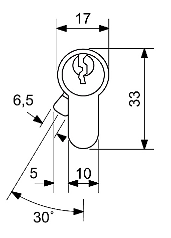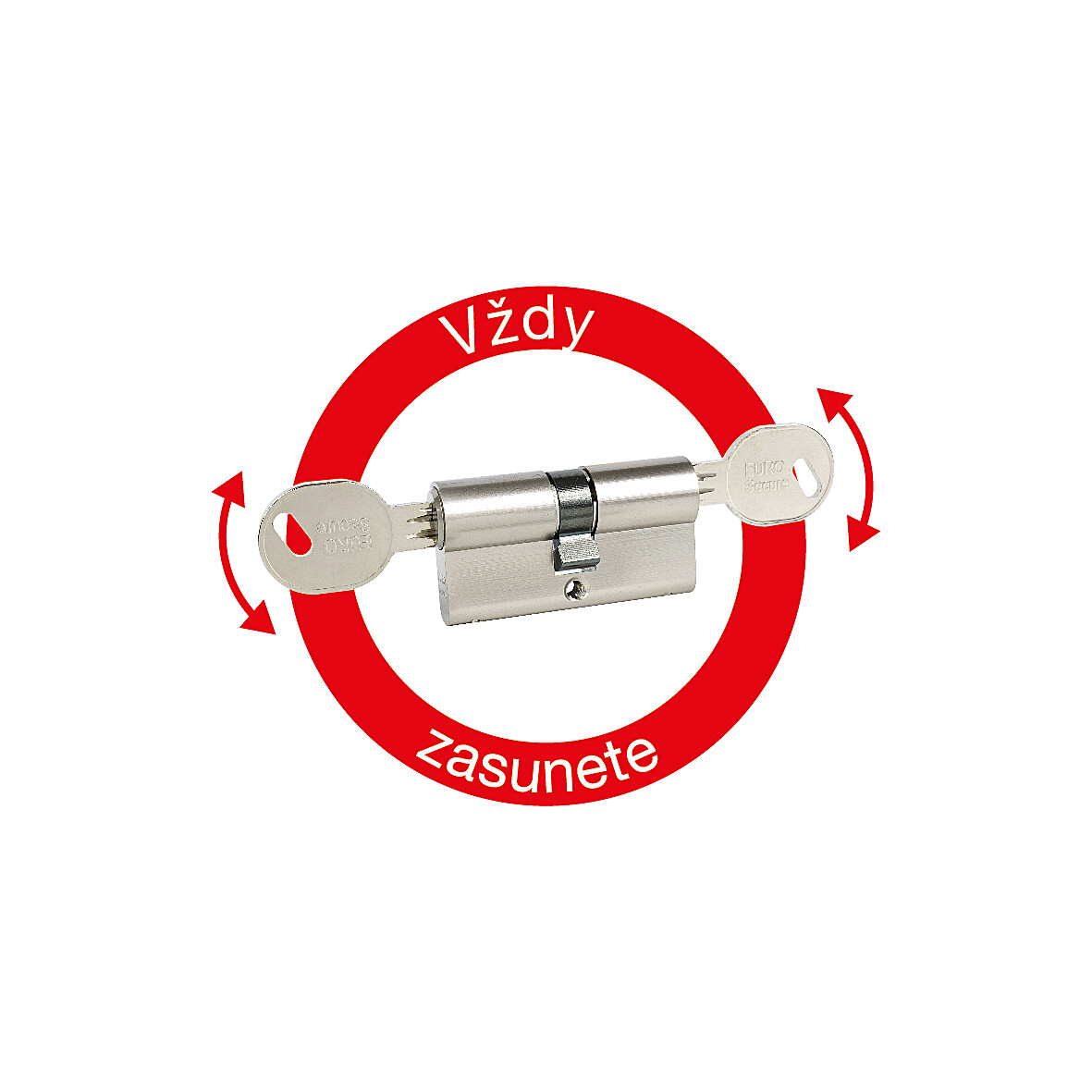 - Bezpečnostná 6-stavítková vložka s odolnosťou proti odvŕtaniu a nedeštruktívnej dynamickej metóde (tzv. bumping) as prestupovou spojkou (BSZ) = vložka je možné odomknúť aj pri zasunutom kľúči z druhej strany.