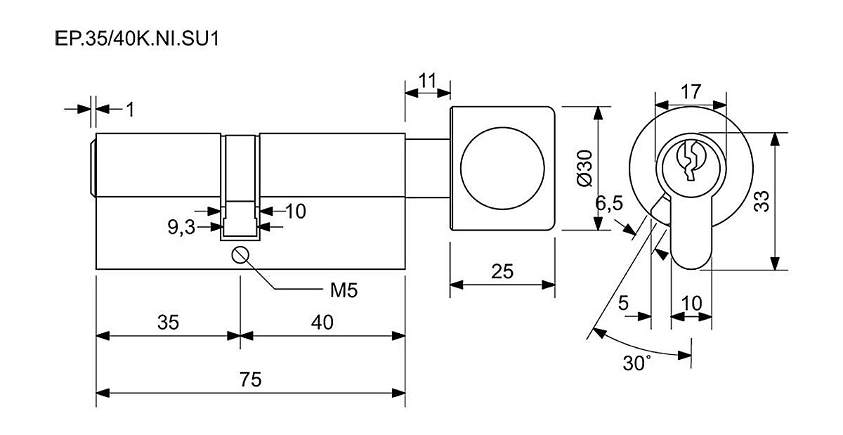 Stavebná gombíková obojstranná 5stavítková vložka EURO Plus na SU