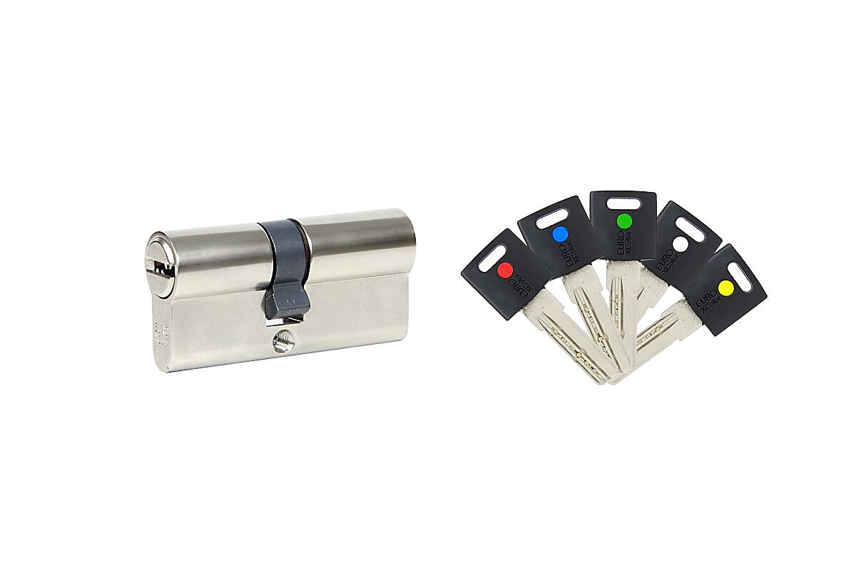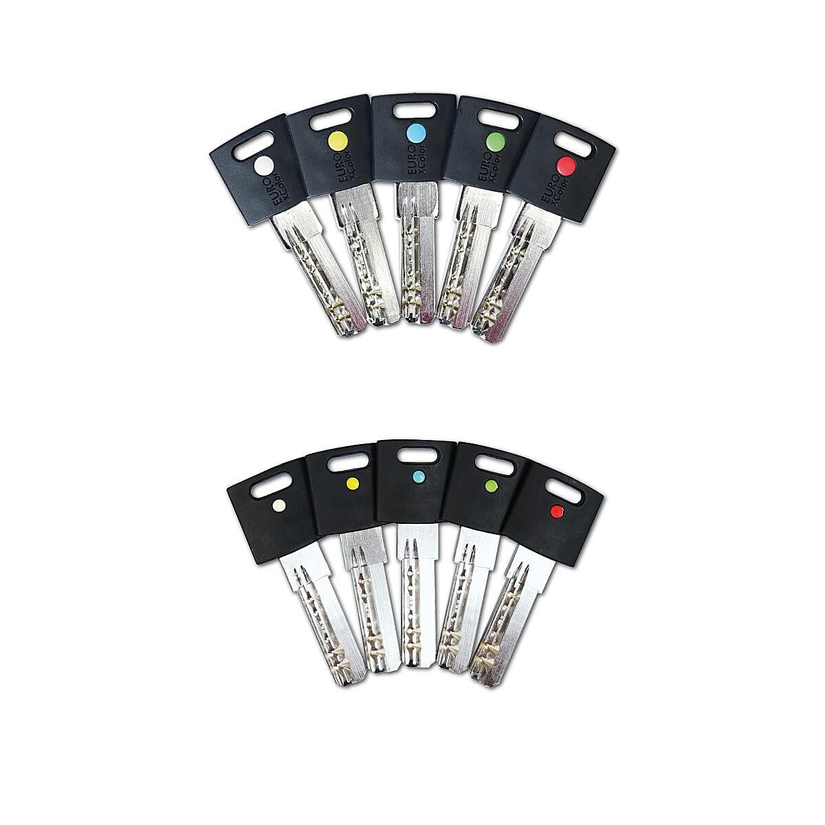 Príslušné kľúče každej vložky obsahujú vždy 5 rôznych farieb pinov: červená (CRV), modrá (MOD), zelená (ZEL), žltá (ZLU), biela (BIL)