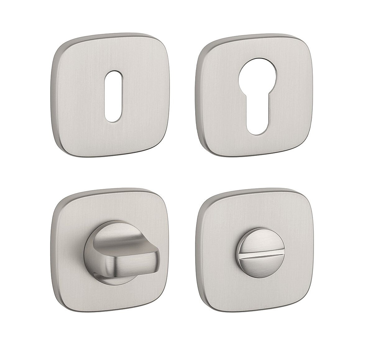 Prevedenie: oválny otvor pre interiérový kľúč (BB), otvor pre cylindrickú vložku (PZ), WC set s vmontovaným kľúčom. Balenie obsahuje 2 kusy roziet (pár) a rozety WC sú v balení ako set.