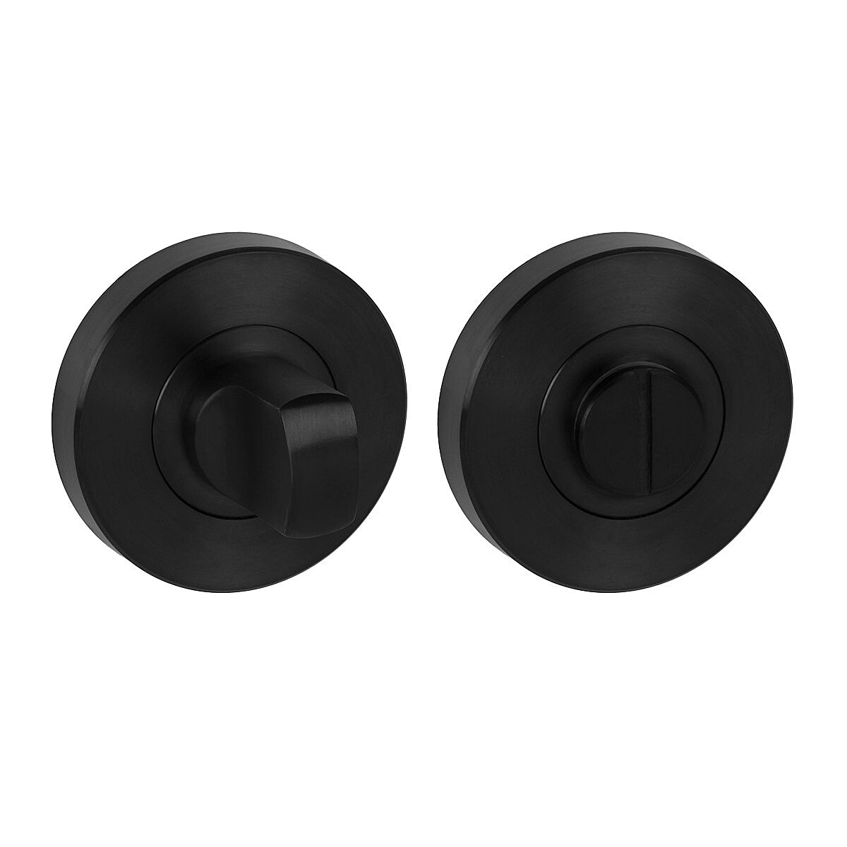 Okrúhla rozeta je vyrobená z vysoko kvalitnej nehrdzavejúcej ocele, známej ako nerez a je povrchovo upravená. Čierny matný povrch je nanesený vysoko kvalitnou technológiou pokovovania PVD, na ktorú sa vzťahuje predĺžená 10-ročná záruka. Krycie rozety sú upevnené vnútorným závitom bez viditeľných spojov, ktorý zaručuje extrémne pevný spoj a hladké priľnutie k povrchu dverí.