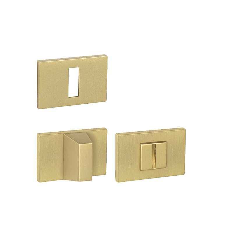 Rozeta má hranatý otvor pre interiérový kľúč (BBQ) alebo WC set s vmontovaným kľúčom. Balenie obsahuje 2 kusy roziet (pár) a rozety WC sú v balení ako set.