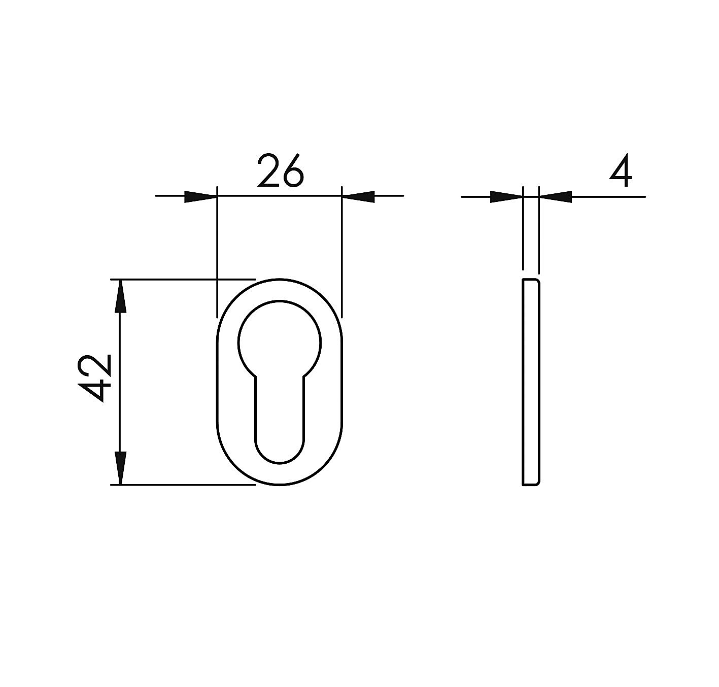 Rozeta má rozmer 26 x 42 mm a hrúbku 4 mm.
