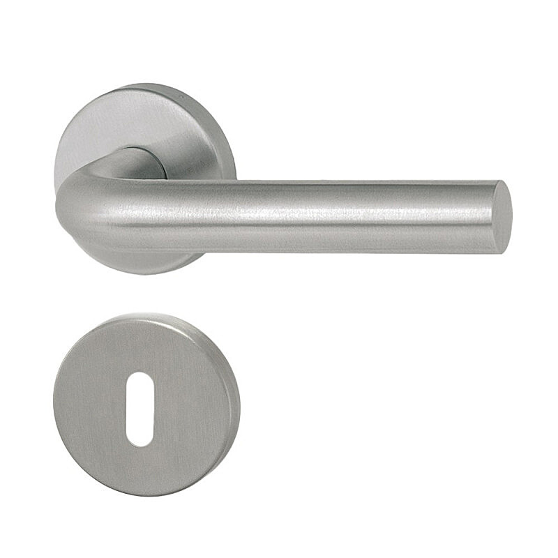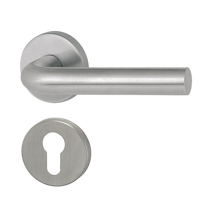 Dverná kľučka MT 01 s guľatou, hranatou alebo oválnou rozetou je vhodná na inštaláciu do interiéru aj exteriéru, vyrobená z nerezovej ocele DIN 1.4301 so satinovaným matným povrchom s moderným a nadčasovým dizajnom, hygienicky nezávadná, s dlhou životnosťou.