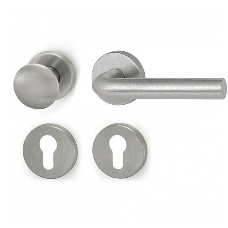 Dverná kľučka MT 01 s guľatou, hranatou alebo oválnou rozetou je vhodná na inštaláciu do interiéru aj exteriéru, vyrobená z nerezovej ocele DIN 1.4301 so satinovaným matným povrchom s moderným a nadčasovým dizajnom, hygienicky nezávadná, s dlhou životnosťou.
