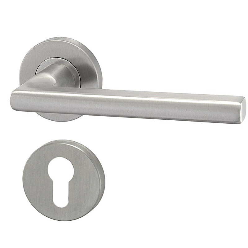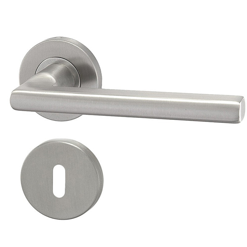 Dverná kľučka MT 13 s guľou a guľatou, hranatou alebo oválnou rozetou je vhodná na inštaláciu do interiéru aj exteriéru, vyrobená z nerezovej ocele DIN 1.4301 so satinovaným matným povrchom s moderným a nadčasovým dizajnom, hygienicky nezávadná, s dlhou životnosťou.