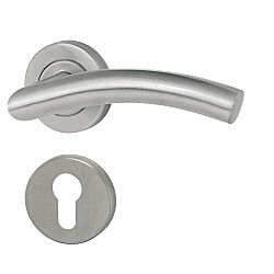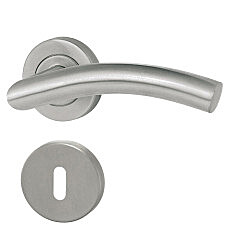 Dverná kľučka MT 05 s guľatou alebo hranatou rozetou je vhodná na inštaláciu do interiéru aj exteriéru, vyrobená z nerezovej ocele DIN 1.4301 so satinovaným matným povrchom s moderným a nadčasovým dizajnom, hygienicky nezávadná, s dlhou životnosťou.