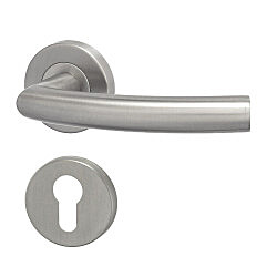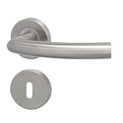 Dverná kľučka MT 06 s guľatou alebo hranatou rozetou je vhodná na inštaláciu do interiéru aj exteriéru, vyrobená z nerezovej ocele DIN 1.4301 so satinovaným matným povrchom s moderným a nadčasovým dizajnom, hygienicky nezávadná, s dlhou životnosťou.
