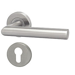 Dverová kľučka MT 11 s guľatou alebo hranatou rozetou je vhodná na inštaláciu do interiéru aj exteriéru, vyrobená z nerezovej ocele DIN 1.4301 so satinovaným matným povrchom s moderným a nadčasovým dizajnom, hygienicky nezávadná, s dlhou životnosťou.
