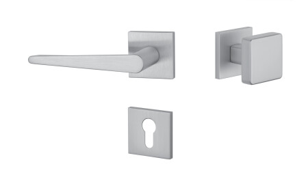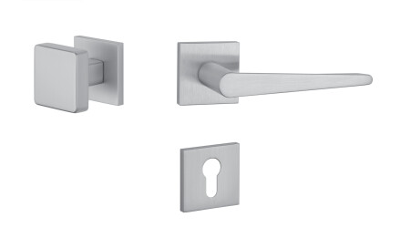 Rozetová kľučka na interiérové dvere s hranatou rozetou je vyrobená z materiálov vysokej kvality - zamak a je povrchovo upravená. Rozeta má rozmer 52x52 mm a hrúbku len 7 mm. Minimalistický dizajn rozety s vysokou stabilitou kľučky na dverách pôsobí jemne, a tým ponecháva priestor na vyniknutie dizajnu samotnej kľučky.