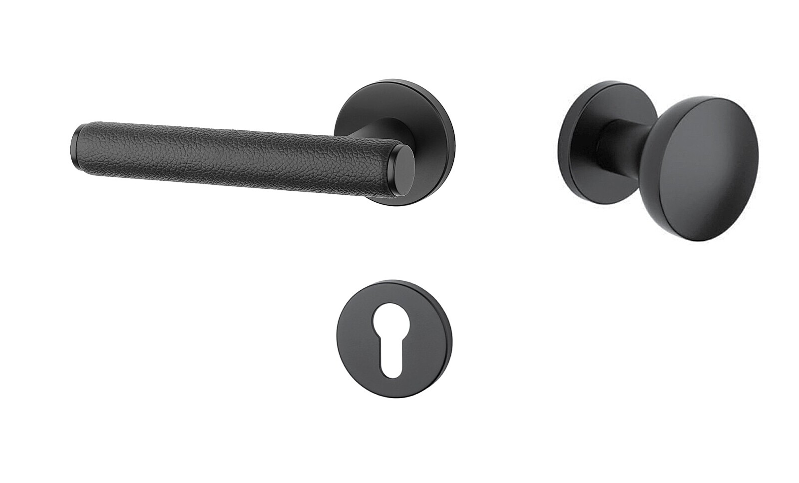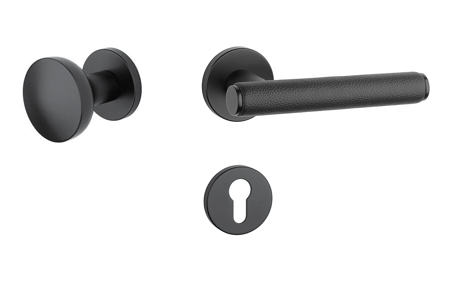 Dverné kovanie MP AS - EGERIA - R 7S (BS - Čierna matná / čierna koža)