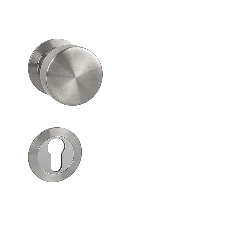 Dverná pevná priama guľa na okrúhlej rozete je vyrobená z vysoko kvalitnej nehrdzavejúcej ocele, známej ako nerez a je povrchovo upravená.