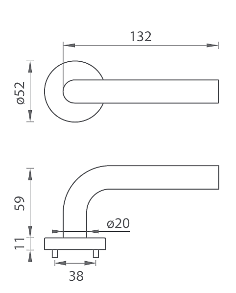 Rozetová kľučka na interiérové dvere s guľatou rozetou je vyrobená z vysoko kvalitnej nehrdzavejúcej ocele, známej ako nerez a je povrchovo upravená. Rozeta má priemer 52 mm a štandardnú hrúbku 11 mm.