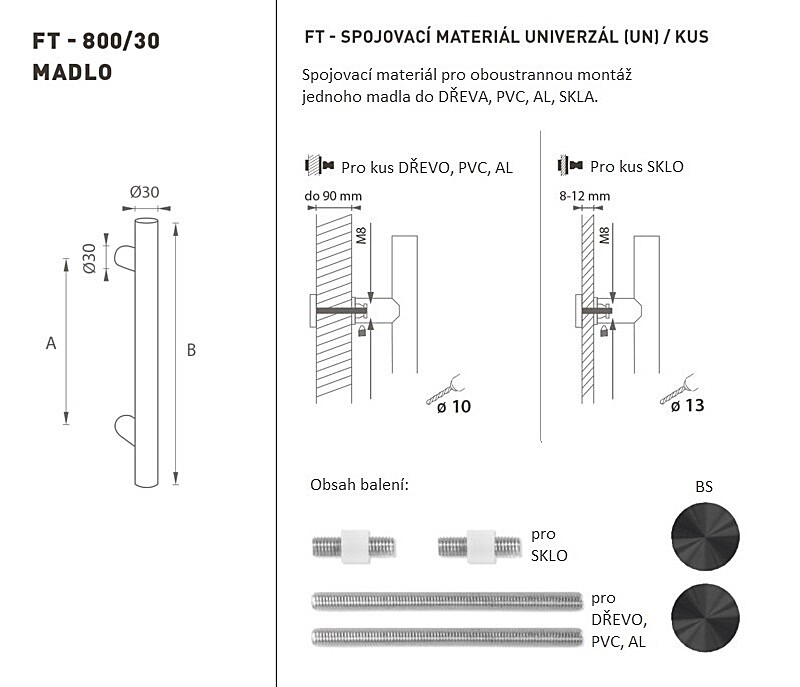 DVERNÉ MADLO MP kód K00 Ø 30 mm UN - ks (BS - Čierna matná)
