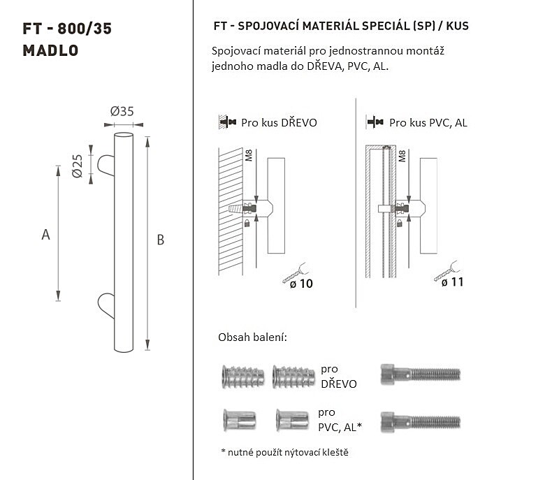 DVERNÉ MADLO MP kód K00 Ø 35 mm SP - ks (BN - Brúsená nerez)