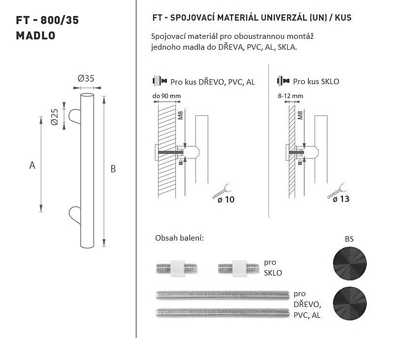 DVERNÉ MADLO MP kód K00 Ø 35 mm UN - ks (BS - Čierna matná)