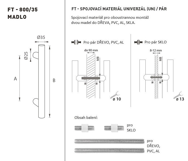 DVERNÉ MADLO MP kód K00 Ø 35 mm UN - pár (BS - Čierna matná)