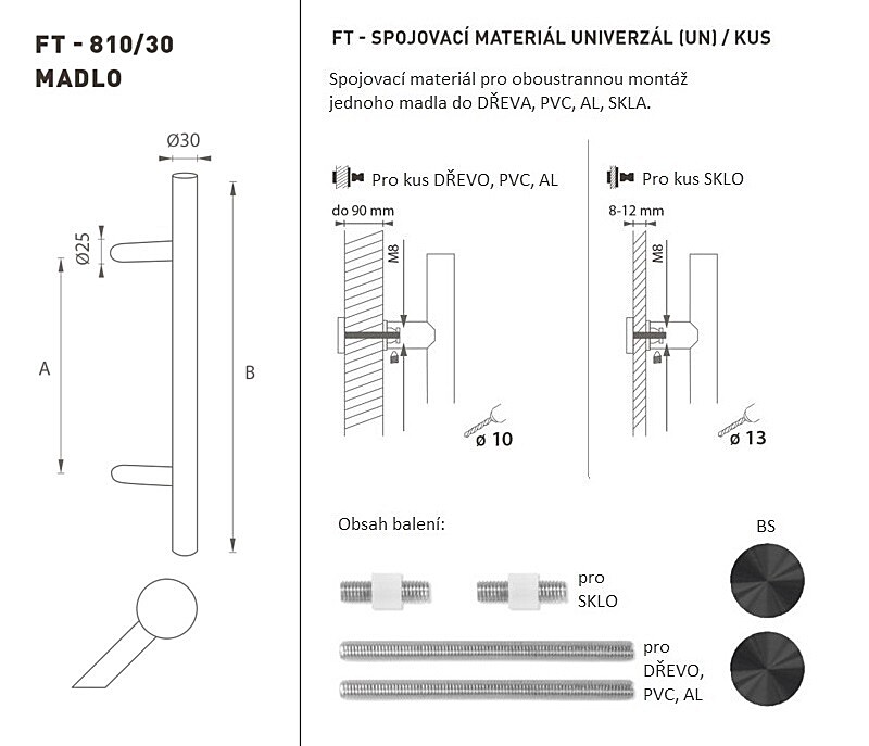 DVERNÉ MADLO MP kód K10 Ø 30 mm UN - ks (BS - Čierna matná)