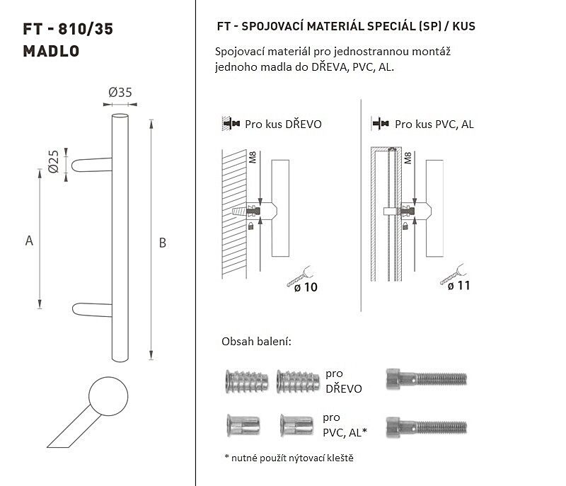 DVERNÉ MADLO MP kód K10 Ø 35 mm SP - ks (BS - Čierna matná)