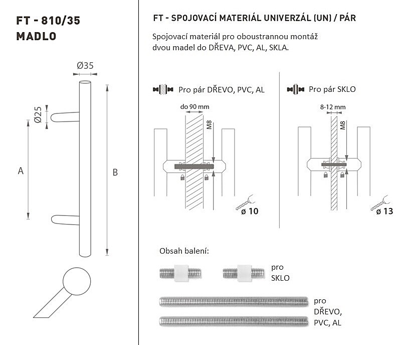 DVERNÉ MADLO MP kód K10 Ø 35 mm UN - pár (BS - Čierna matná)