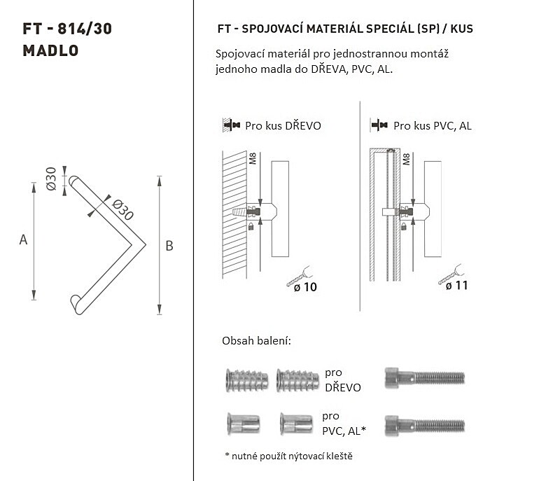 DVERNÉ MADLO MP kód K14 Ø 30 mm SP - ks (BS - Čierna matná)
