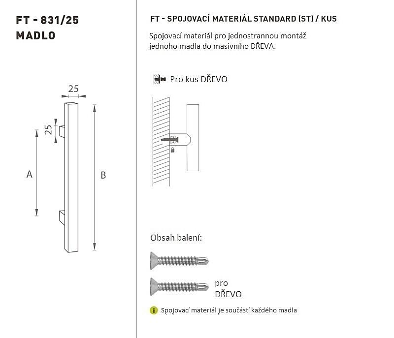 Madlo na dvere je vyrobené z vysoko kvalitnej nehrdzavejúcej ocele, známe ako nerez a je povrchovo upravené. Profil madla 25 mm x 25 mm. Uvedená cena je za 1 kus. K držadlám na dvere odporúčame zakúpiť aj spojovací materiál podľa požadovaného typu materiálu.