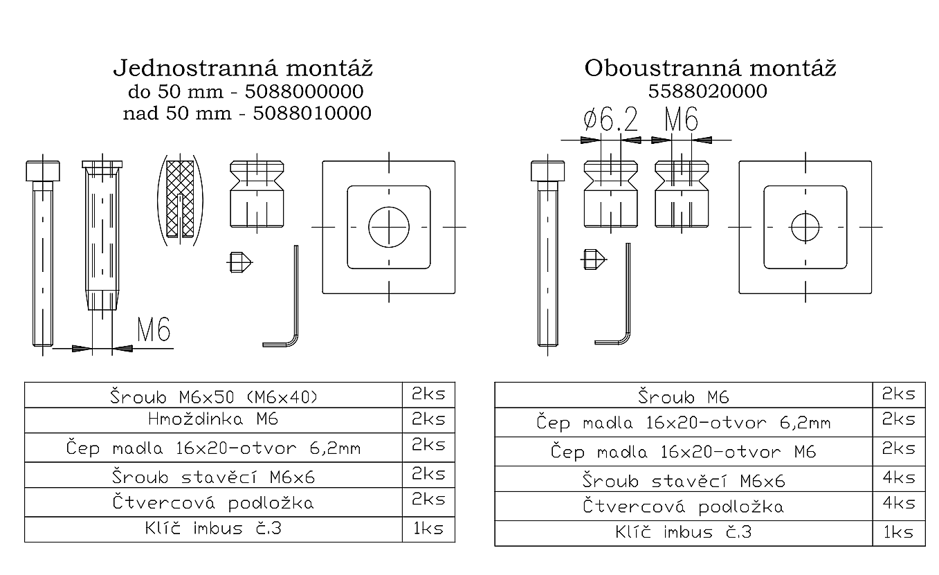 rozteč 600 mm, dĺžka 500 mm Prevedenie: |