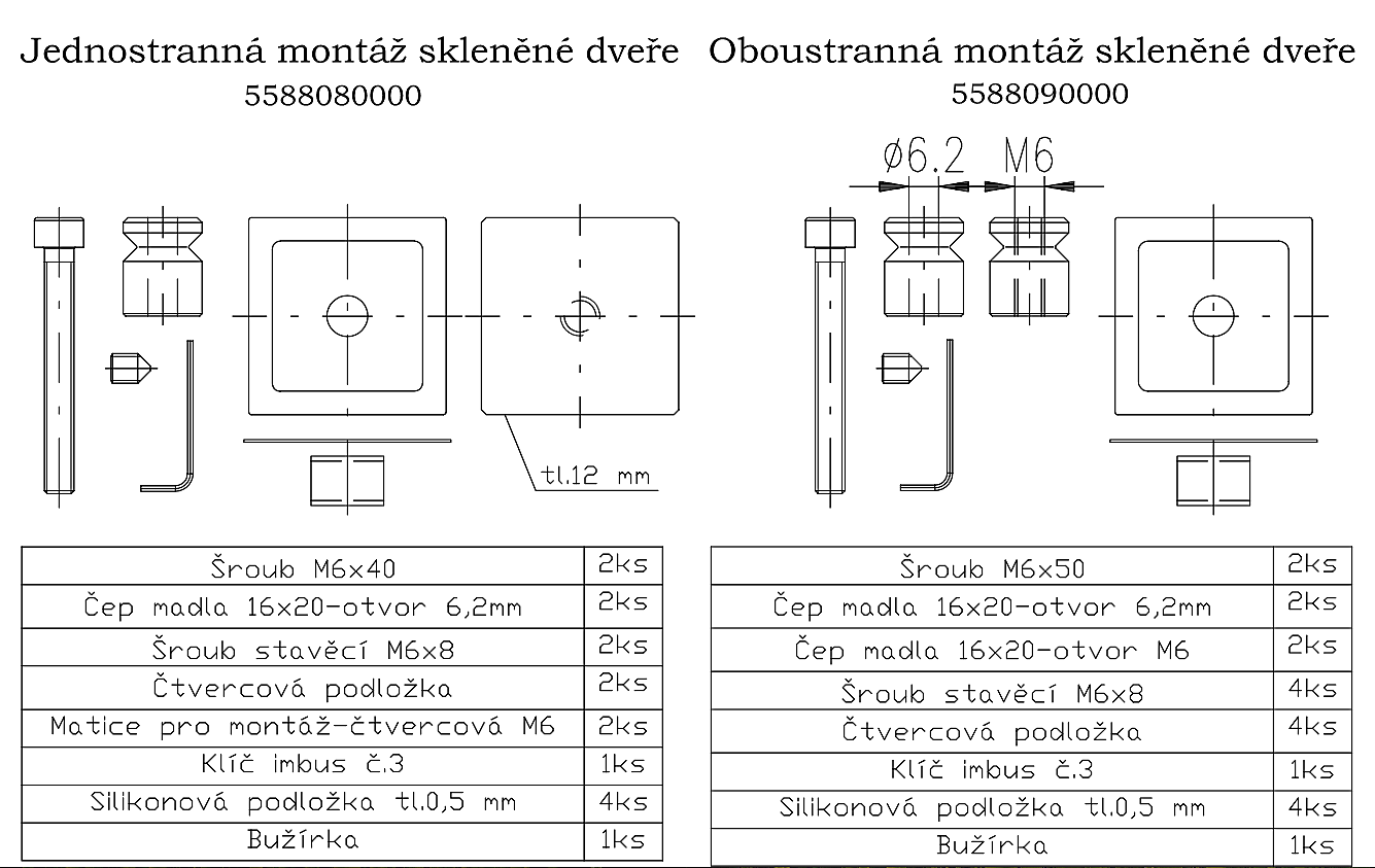 rozteč 830 mm, délka 800 mm - sklo Prevedenie: |