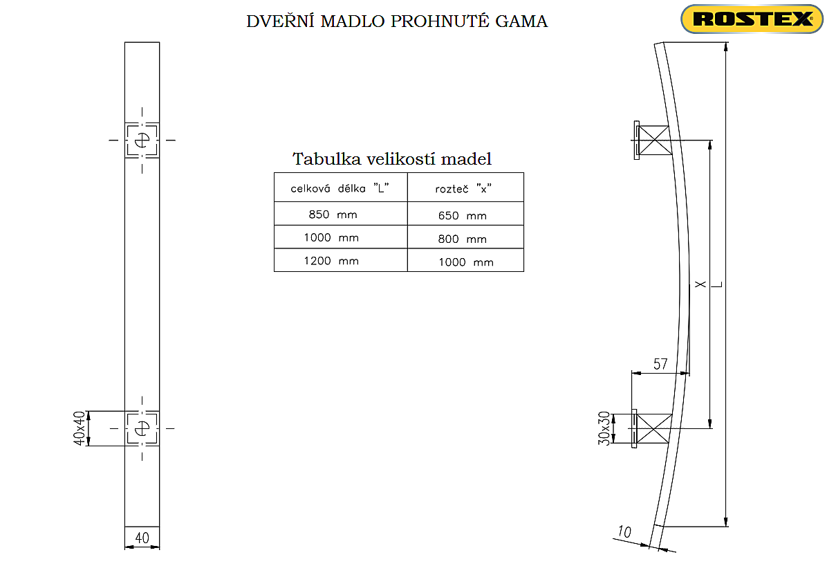 Dverné madlo ROSTEX GAMA (čierne) - jednostranné