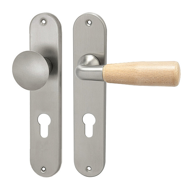 Dverová kľučka WSS 01 so štítom je vhodná na inštaláciu do interiéru aj exteriéru, vyrobená z nerezovej ocele DIN 1.4301 so satinovaným matným povrchom s moderným a nadčasovým dizajnom a rukoväťou z bukového dreva s moderným a nadčasovým dizajnom, hygienicky nezávadná, s dlhou životnosťou. Povrchová úprava je realizovaná kefovaním, nie sú na ňu nanášané žiadne ďalšie laky, či vykonávané iné povrchové úpravy. Je odolná proti tzv. "prstienkovému efektu" - poškriabaniu či oprýskaniu prstienky alebo inými kovovými predmetmi.