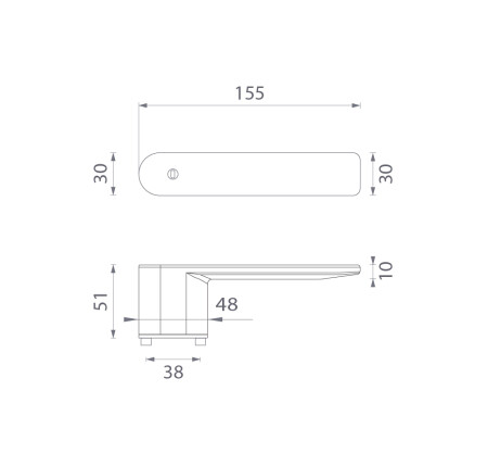 Rozeta má rozmery 50 mm x 30 mm. Je tenká len 2,5 mm a stáva sa tak takmer neviditeľnou súčasťou designu kľučky.
