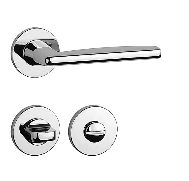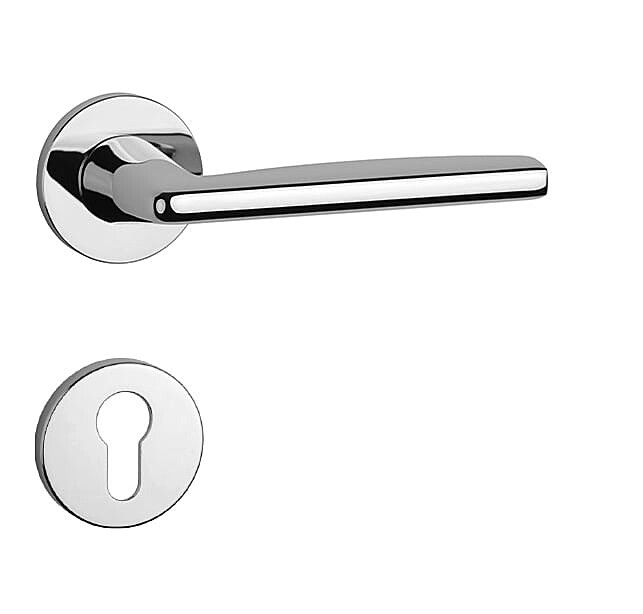 Rozetová kľučka na interiérové dvere s guľatou rozetou je vyrobená z materiálov vysokej kvality - zamak a je povrchovo upravená. Rozeta má priemer 52 mm a hrúbku iba 7 mm. Minimalistický dizajn rozety s vysokou stabilitou kľučky na dverách pôsobí jemne, a tým ponecháva priestor na vyniknutie dizajnu samotnej kľučky.