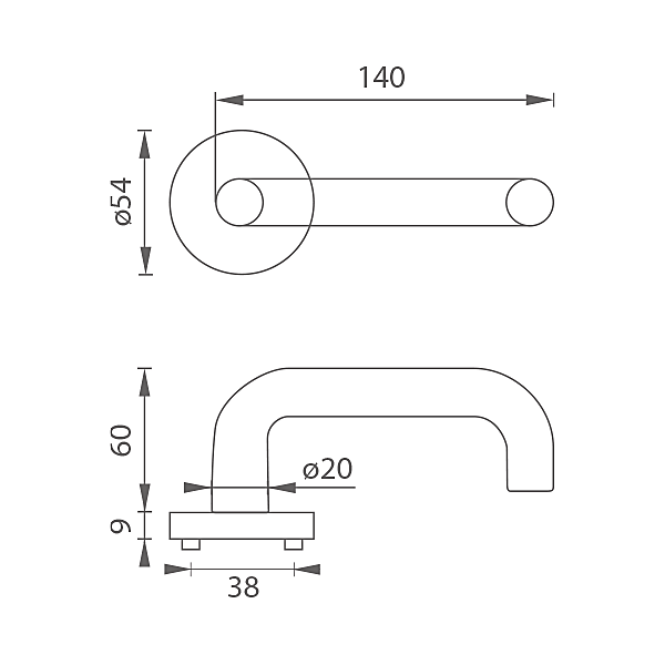 Rozetová kľučka na interiérové dvere s guľatou rozetou z kvalitnej nehrdzavejúcej ocele, známe ako nerez a je povrchovo upravená. Rozeta má priemer 54 mm a hrúbku 9 mm. Je farebne stabilná a odolná voči opotrebovaniu. Kovanie je testované podľa normy STN EN 1906: 2012 na 200 000 cyklov.