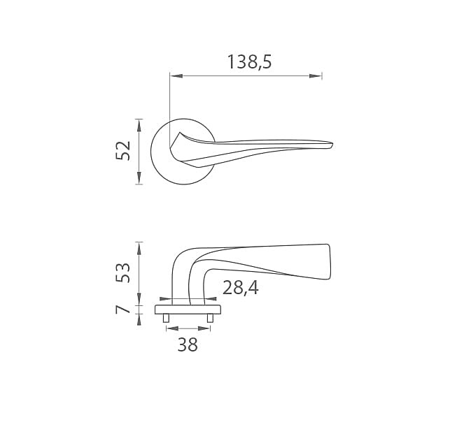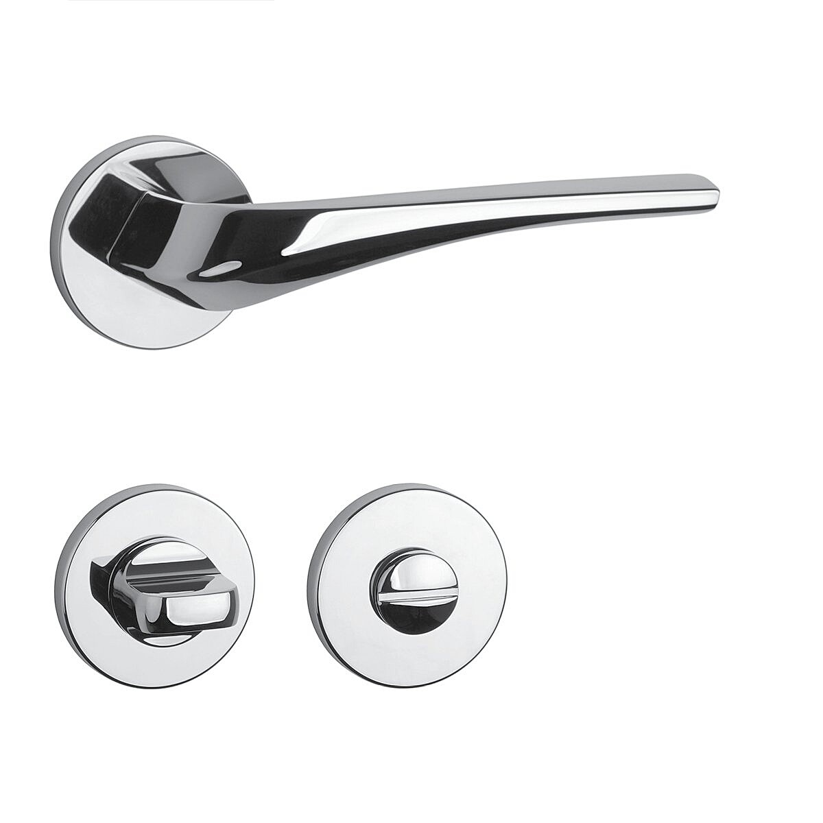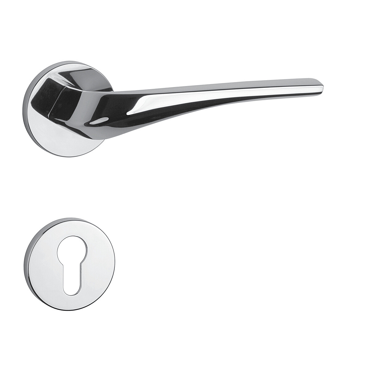 - Rozetová kľučka na interiérové dvere s guľatou rozetou je vyrobená z materiálov vysokej kvality - zamak a je povrchovo upravená. Rozeta má priemer 52 mm a hrúbku iba 7 mm. Minimalistický dizajn rozety s vysokou stabilitou kľučky na dverách pôsobí jemne, a tým ponecháva priestor na vyniknutie dizajnu samotnej kľučky.