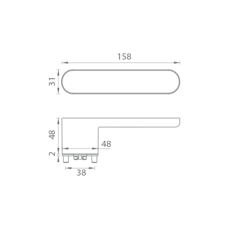 Rozetová kľučka na interiérové dvere s obdĺžnikovou rozetou je vyrobená z materiálov vysokej kvality - zamak a je povrchovo upravená. Spodná rozeta má rozmery 48 mm x 44 mm a hrúbku 2 mm. Samotná rozeta je súčasťou designu kľučky.