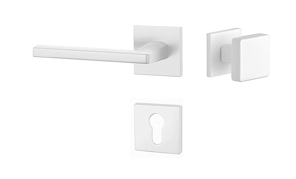 Rozetová kľučka na interiérové dvere s hranatou rozetou je vyrobená z materiálov vysokej kvality - zamak a je povrchovo upravená. Rozeta má rozmer 52x52 mm a hrúbku len 7 mm. Minimalistický dizajn rozety s vysokou stabilitou kľučky na dverách pôsobí jemne, a tým ponecháva priestor na vyniknutie dizajnu samotnej kľučky.