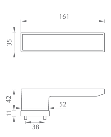 Rozetová kľučka na interiérové dvere s obdĺžnikovou rozetou je vyrobená z materiálov vysokej kvality - zamak a je povrchovo upravená. Rozeta má rozmery 52 mm x 35 mm a štandardnú hrúbku 11 mm. Samotná rozeta je súčasťou designu kľučky.