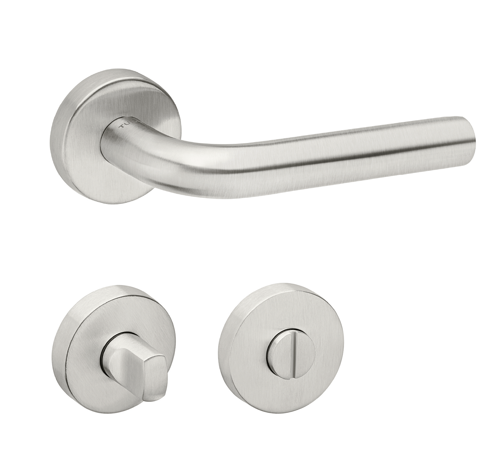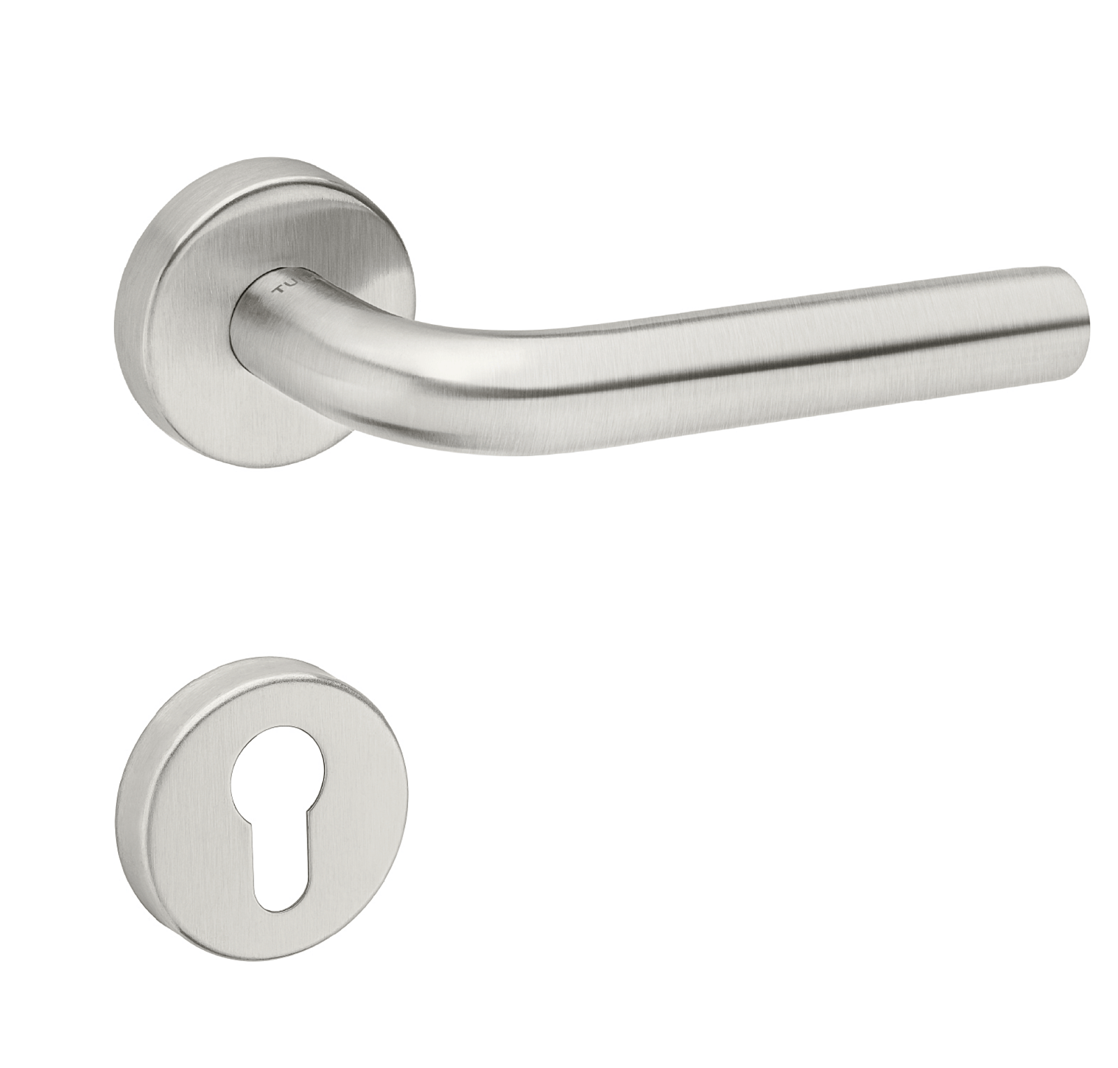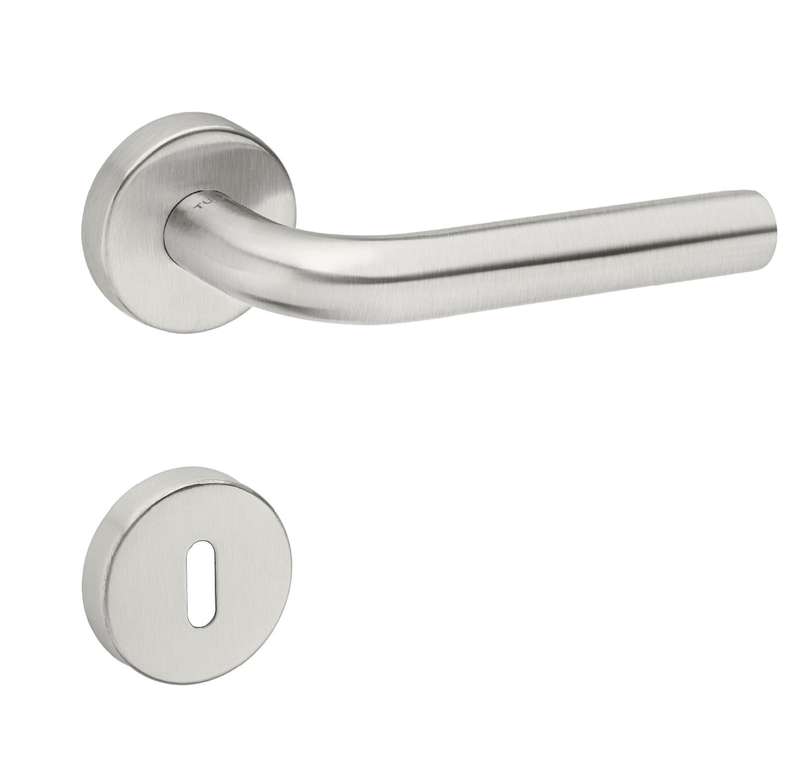 Rozetová kľučka na interiérové dvere s guľatou rozetou je vyrobená z vysoko kvalitnej nehrdzavejúcej ocele, známej ako nerez a je povrchovo upravená. Rozeta má priemer 52 mm a štandardnú hrúbku 11 mm.