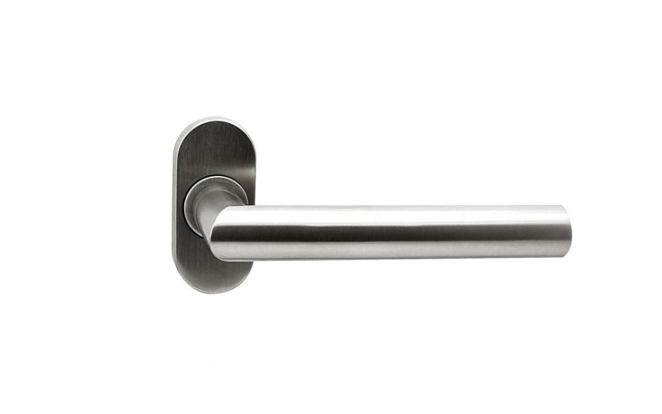 Nerezové kovanie na oválnych rozetách s vratnou pružinou kľučiek.