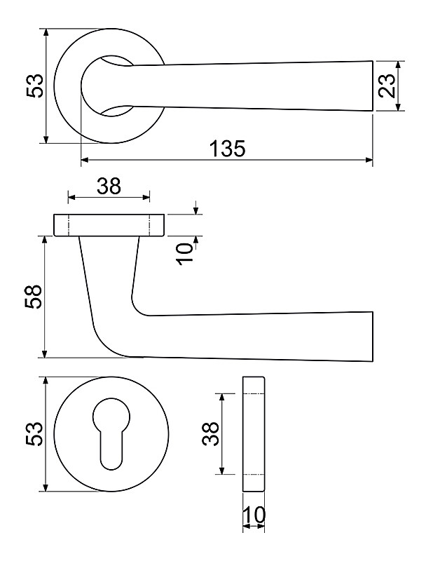 Ekonomické oceľové kovanie na okrúhlych rozetách s vratnou pružinou kľučiek