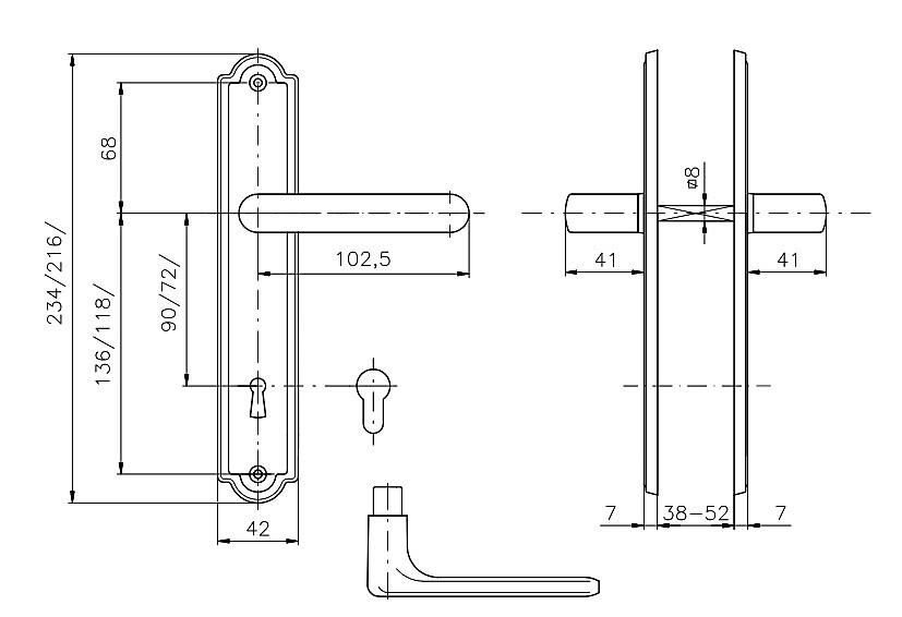 | Typ otvoru - variant | Otvor na cylindrickú vložku PZ, Otvor pre obyčajný kľúč BB, WC kľúč |