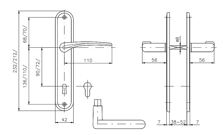 Hrúbka dverí: 38-52 mm