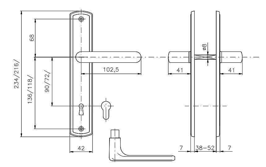| Typy kovania - variant | kľučka pravá / guľa, kľučka ľavá / guľa, kľučka-kľučka |